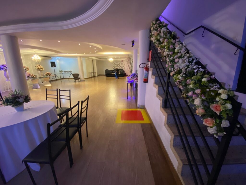"Segundo andar preparado para os convidados do Faeda Recepções, Salão de Festas Pampulha."